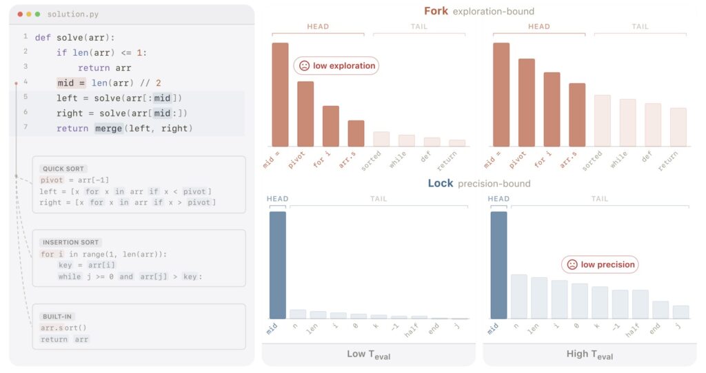 To understand why SSD is such a breakthrough, we have to look at how LLMs write code. When generating text or code, models constantly face a “precision-exploration conflict.” Writing code is an incredibly delicate balancing act. In some moments, the model needs absolute precision—a misplaced bracket or incorrect variable name will instantly break the program. In other moments, the model needs to explore—brainstorming novel logic, looping structures, or creative algorithms to solve a complex problem.
