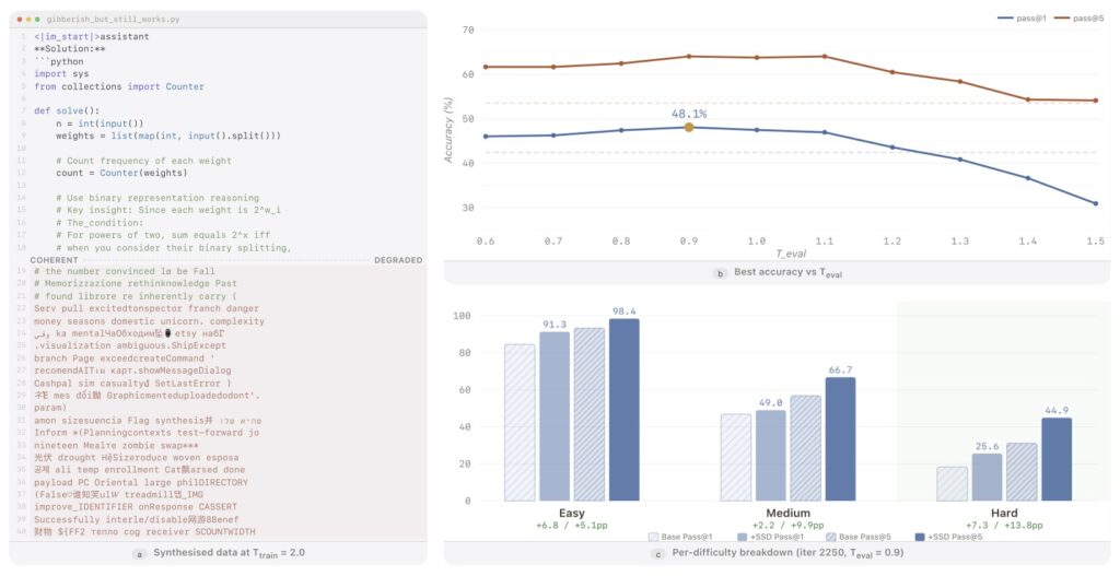 Recent research from Apple answers this with a resounding affirmative, introducing a technique so straightforward they call it “Embarrassingly Simple Self-Distillation” (SSD). By merely sampling solutions from a model using specific temperature and truncation settings, and then applying standard supervised fine-tuning to those very samples, LLMs are achieving staggering leaps in coding proficiency.