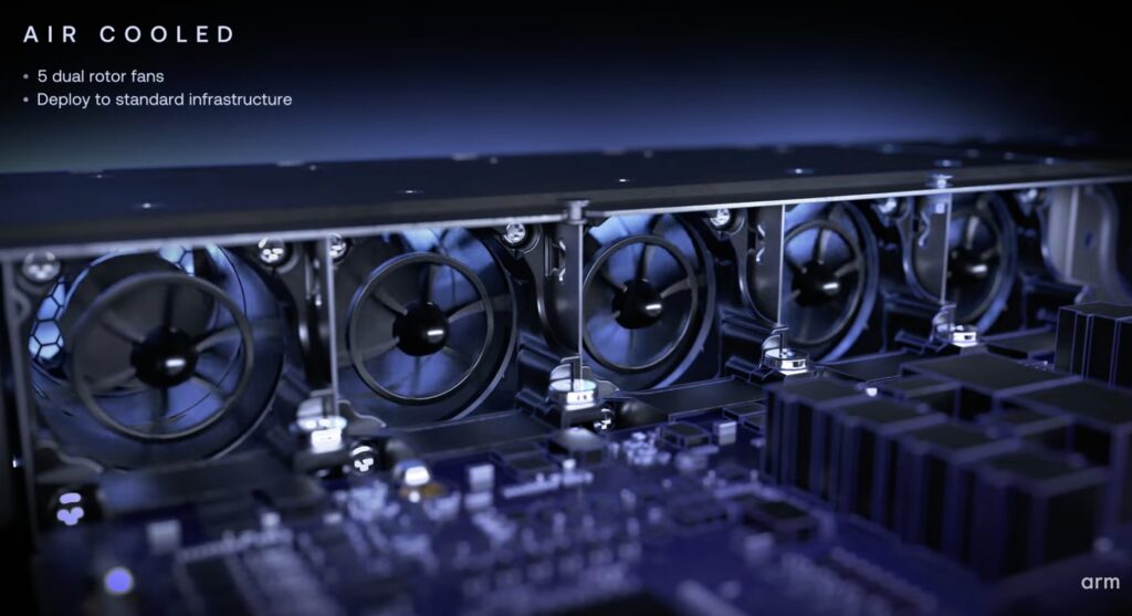 To meet the rigorous demands of rack-scale agentic efficiency, every facet of the AGI CPU—from its operating frequency to its memory and I/O architecture—has been optimized for densely populated data centers. Arm’s reference server design packs a tremendous amount of compute into a compact footprint: a 1OU, two-node configuration housing two chips with dedicated memory and I/O, yielding 272 cores per blade. In a standard air-cooled 36kW rack of 30 blades, this translates to an astonishing 8,160 cores. For the most extreme environments, Arm has partnered with Supermicro to engineer a liquid-cooled 200kW design capable of supporting 336 Arm AGI CPUs, pushing the boundaries past 45,000 cores in a single rack.