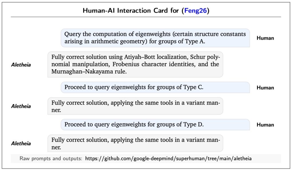 The capabilities of this new system have already been demonstrated through a series of unprecedented milestones in autonomous mathematics research. Most notably, Aletheia has generated multiple publication-grade academic papers, including one landmark paper produced entirely without human intervention. Furthermore, in an extensive semi-autonomous evaluation involving 700 open problems from Bloom’s Erdős Conjectures database, the agent successfully engineered autonomous solutions to four previously unsolved open questions. Aletheia has also achieved leading performance on FirstProof, a rigorous benchmark of research-level problems proposed by leading mathematicians specifically to assess the frontier capabilities of artificial intelligence.