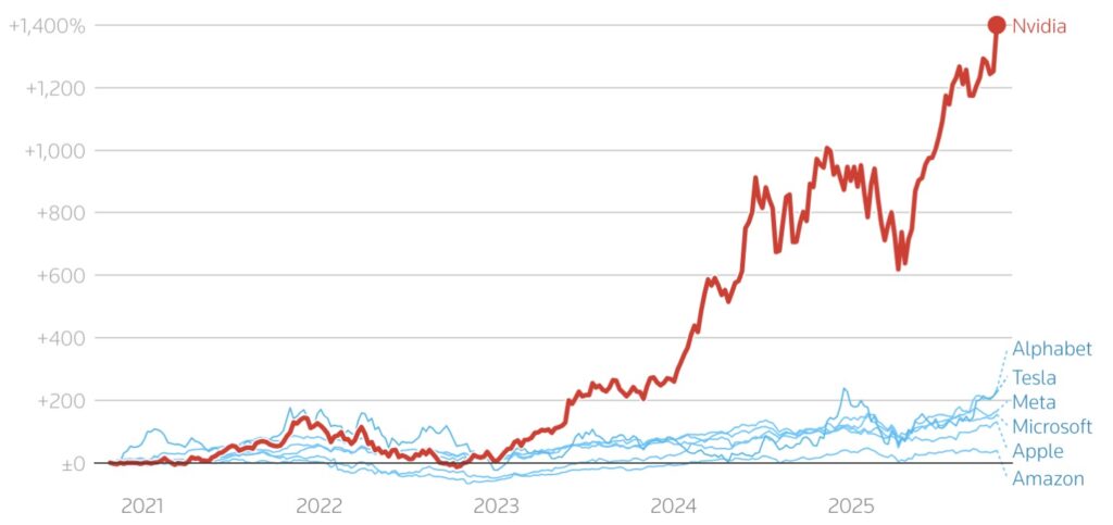 - Massive Market Sell-Off: Over $1 trillion in stock value has evaporated from AI-heavy tech companies like Nvidia, Meta, Oracle, and Palantir in just one week, marking Wall Street’s worst slump since the early days of the Trump era.