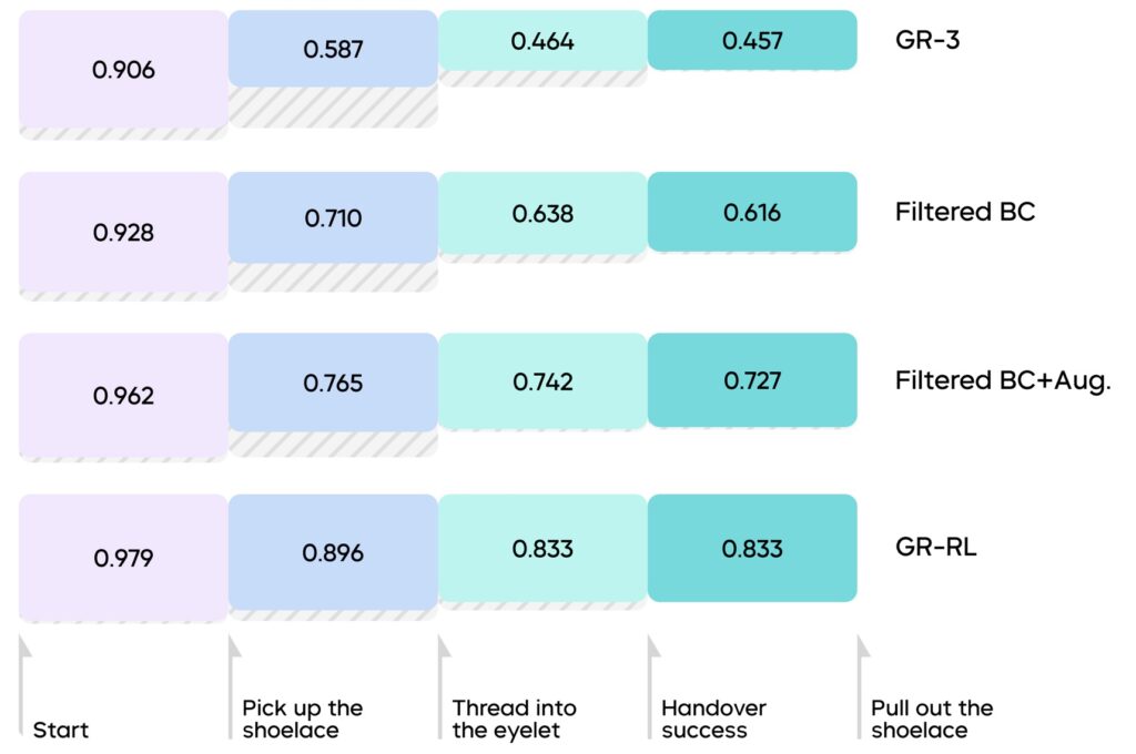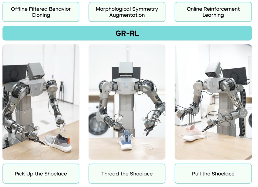 This makes GR-RL, to the researchers’ knowledge, the first learning-based policy capable of autonomously threading shoelaces through multiple eyelets.