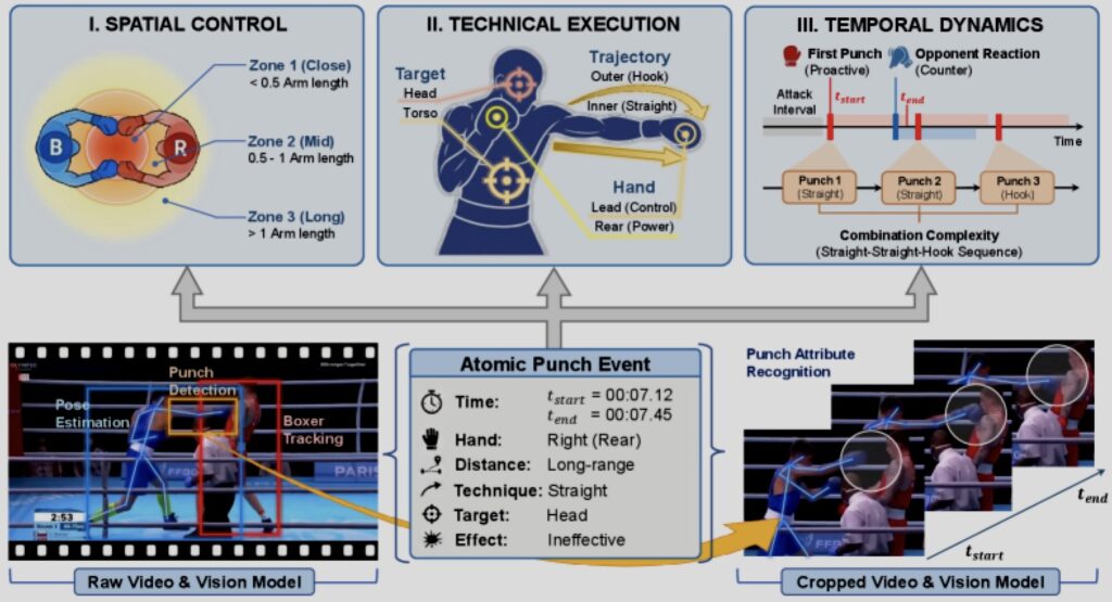 The primary challenge in boxing analytics is the lack of structured data. Unlike baseball or cricket, where plays have clear start and stop points, a boxing match is a fluid, chaotic stream of aggression. BoxMind solves this by defining “atomic punch events.”