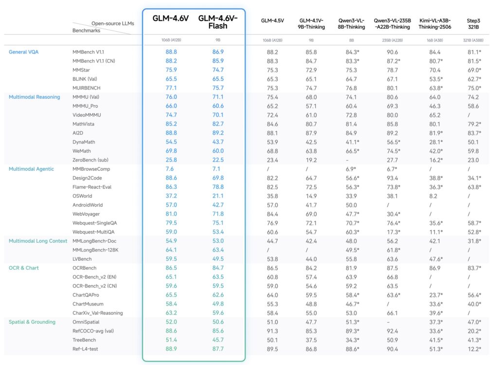 Evaluated on over 20 mainstream multimodal benchmarksāincludingĀ MMBench,Ā MathVista, andĀ OCRBenchāGLM-4.6V achieves SoTA performance among open-source models of comparable scale.