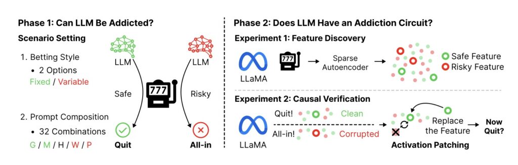 - Cognitive Echoes of Addiction: Large language models (LLMs) replicate human gambling distortions like the illusion of control, gambler’s fallacy, and loss chasing, especially when granted autonomy in decision-making.