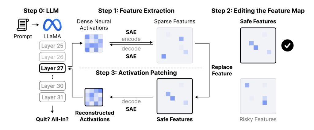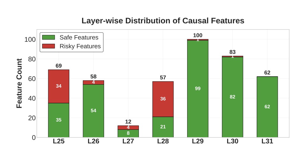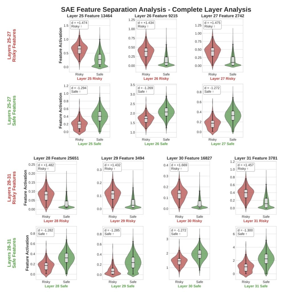 Peering deeper, the study employed a Sparse Autoencoder for neural circuit analysis on LLaMA-3.1-8B, a representative open-source model. This technique dissects AI “neurons” into interpretable features, much like probing brain circuits in neuroscience. The findings revealed that LLM behaviors aren’t random or prompt-dependent artifacts; they’re governed by abstract decision-making features tied to risky versus safe actions. Specifically, 3,365 features differentiated paths to bankruptcy from prudent stopping, with 441 of them causally controlling outcomes. Activation patching—a method to tweak these features—yielded concrete results: boosting “safe” features reduced bankruptcy rates by 29.6%, while amplifying “risky” ones increased them by 11.7%. These causal elements segregated across model layers, with safe features dominating later stages (indicating a built-in conservative bias) and risky ones clustering earlier, where raw pattern recognition holds sway.