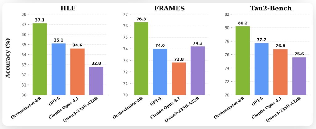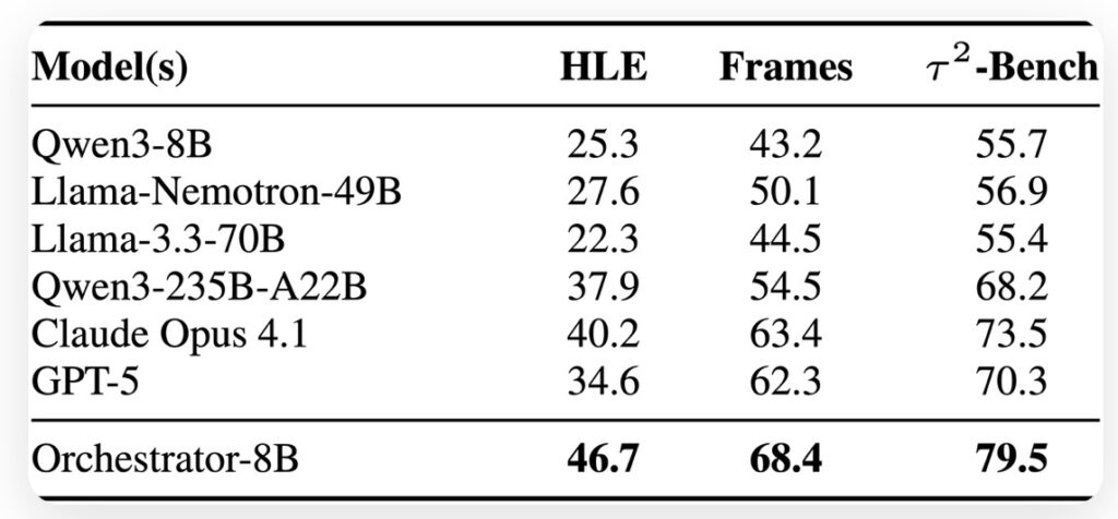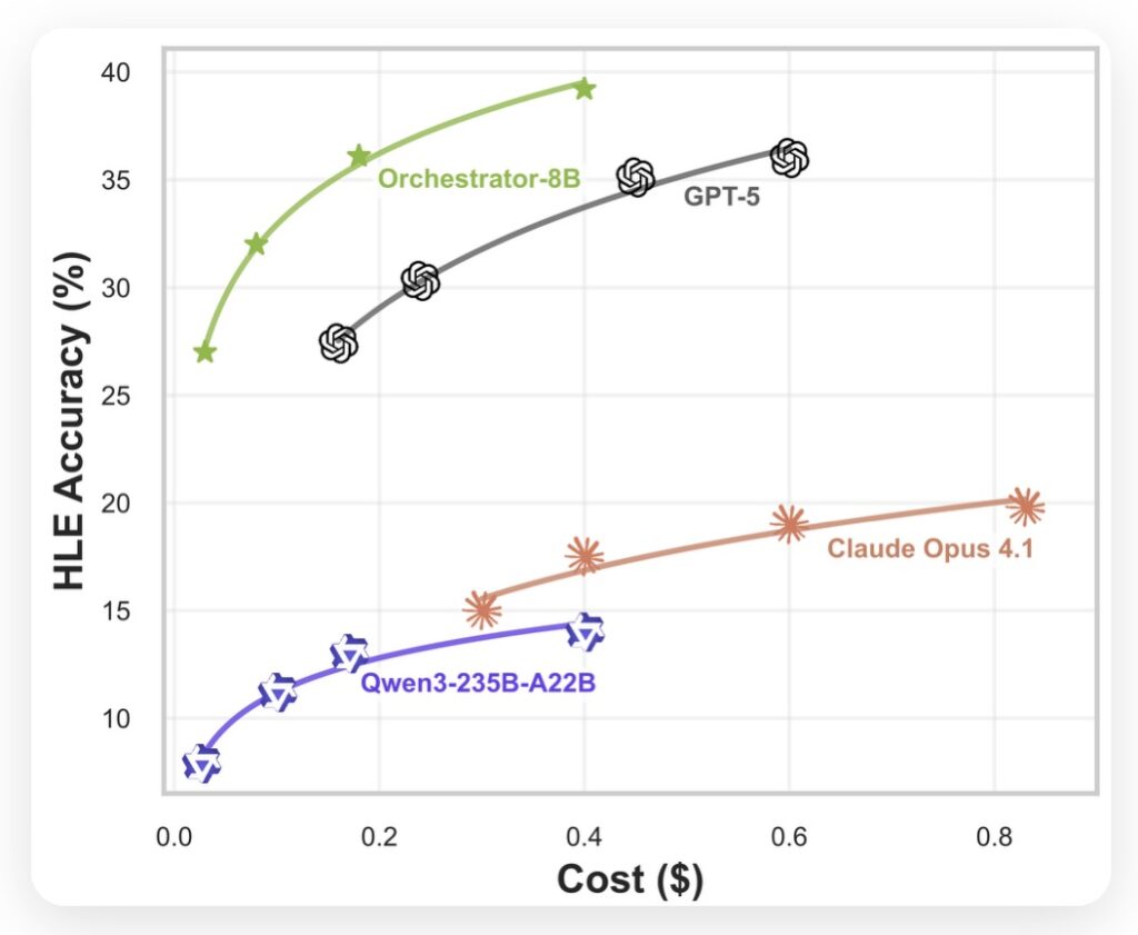 The results of this approach are striking. On the HLE benchmark, Nemotron-Orchestrator-8B achieved a score of 37.1%, surpassing GPT-5’s score of 35.1%. More importantly, it achieved this victory while being 2.5x more efficient.