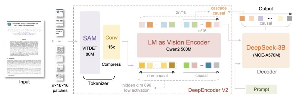 Instead of blindly scanning, DeepEncoder V2 builds a global understanding of the image first. It then intelligently reorders visual tokens based on the image’s semantics. This allows the model to “attend” to elements in a logical sequence—determining what to look at first, next, and so on.