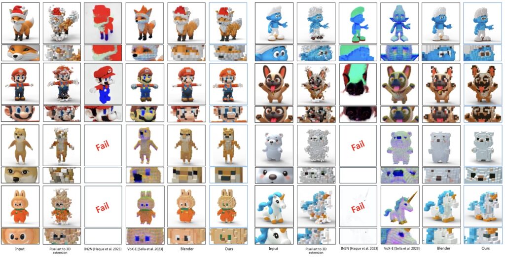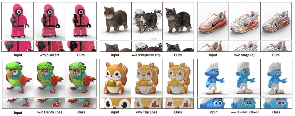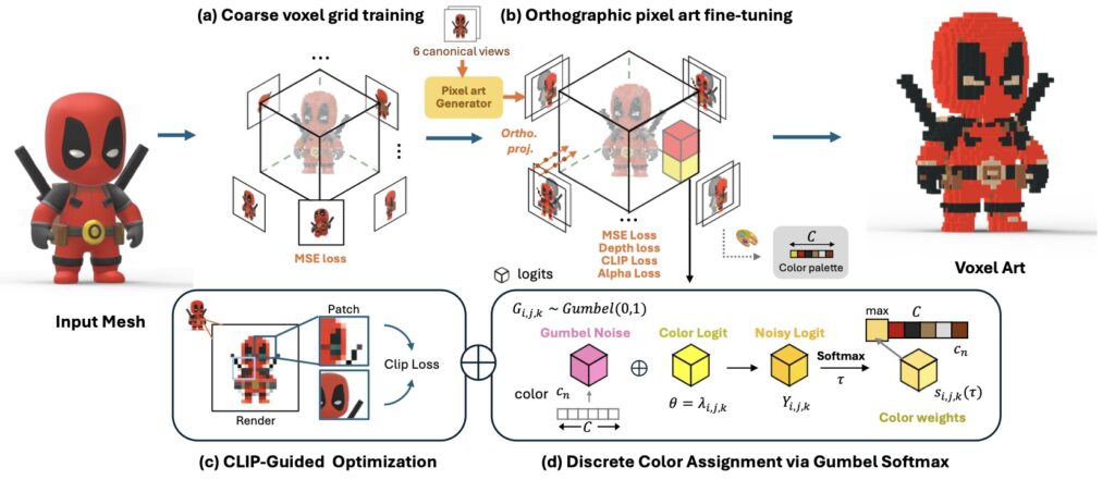 - Orthographic Pixel Art Supervision: To achieve that “flat” retro look, the system refines the grid using six orthographic views. This eliminates perspective distortion, ensuring precise alignment between the 3D voxels and the 2D pixel aesthetic.