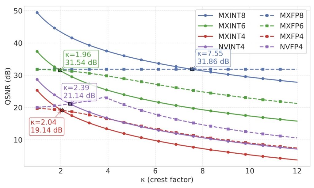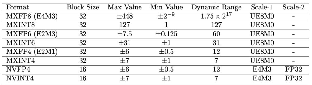 This paper bridges that gap with a systematic investigation, introducing integer variants like MXINT8, MXINT6, MXINT4, and NVINT4 to directly pit against their FP counterparts (MXFP8, MXFP6, MXFP4, NVFP4). The results uncover a fascinating “crossover point” in performance. At coarse granularities, FP reigns supreme, leveraging its dynamic range to manage broad distributions effectively. But as block sizes shrink and granularity finer, the local dynamic range within each block narrows, allowing INT’s uniform precision to shine. Suddenly, INT isn’t just competitive—it’s often superior. For instance, in popular 8-bit fine-grained formats like MX with a block size of 32, MXINT8 outperforms MXFP8 in both algorithmic accuracy and hardware efficiency. This isn’t just a minor edge; it translates to real-world gains in power consumption and processing speed, making INT a smarter choice for resource-constrained environments like edge devices or data centers.