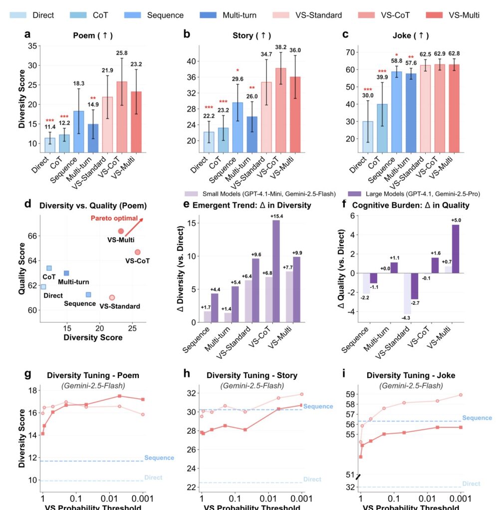 Because stronger models have a better grasp of probability and a richer pre-trained knowledge base, they are more adept at verbalizing these distributions when prompted. This suggests that as LLMs continue to grow in power, techniques like VS will become even more effective, serving as a practical, inference-time switch to toggle between “safe and predictable” and “diverse and creative.”