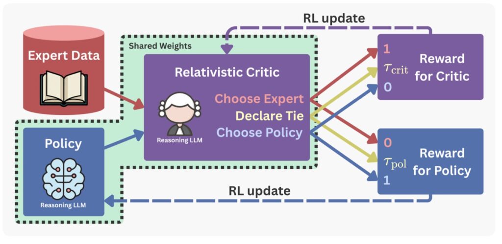 In RARO, the Verifier is only rewarded when it finds a specific flaw in the Student’s logic. It becomes hostile. It essentially acts as a “relativistic critic,” identifying the expert among answer pairs. This forces the Student to produce logic that is undeniably robust.