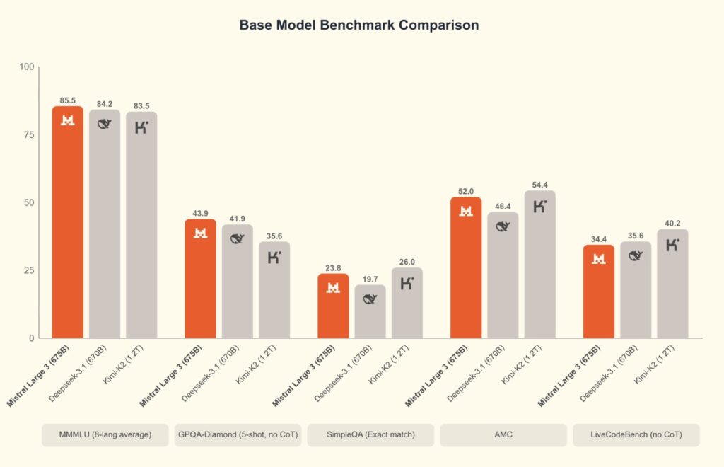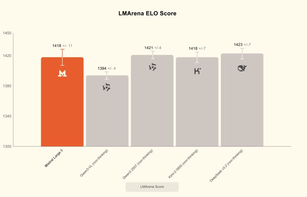 Mistral Large 3 achieves parity with the best instruction-tuned open-weight models on the market. Beyond standard text generation, it boasts: