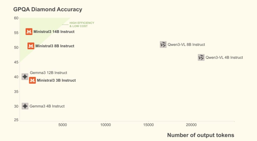 Recognizing that real-world utility often relies on speed and cost, the launch includes the Ministral 3 series. Available in 3B, 8B, and 14B sizes, these dense models are engineered for the best performance-to-cost ratio in the industry.