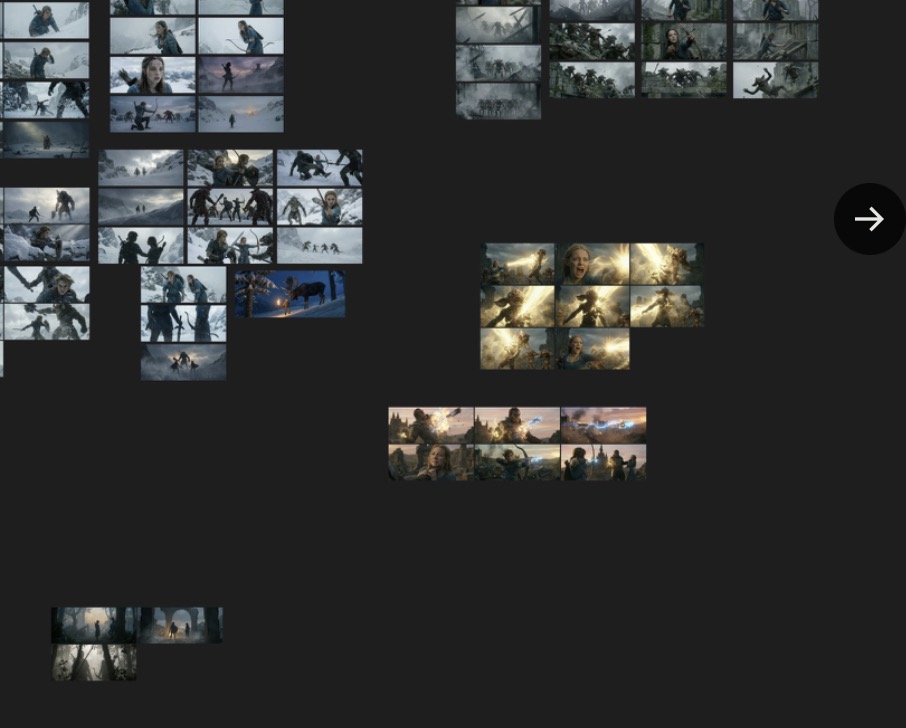 Once the best shots were cropped from the grids, they were arranged to ensure visual flow. However, the raw generations weren’t enough for the big screen. The selected images were fed back into Freepik to be upscaled using Nano Banana Pro. This step added the necessary fidelity and sharpness, transforming a digital sketch into a high-resolution frame ready for animation.