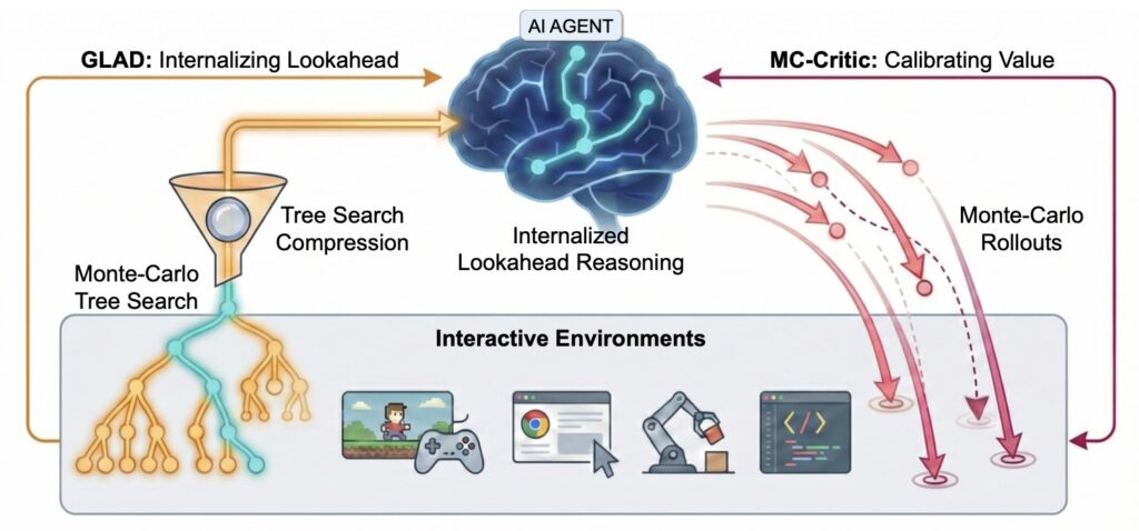 - Internalized Reasoning: Through Grounded LookAhead Distillation (GLAD), agents learn to compress massive search trees into concise, logical “foresight” chains.