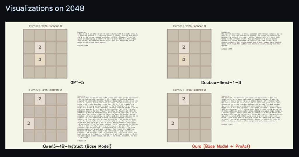 The true test of ProAct lay in its performance across diverse challenges: the stochastic unpredictability of 2048 and the deterministic logic of Sokoban. The results were striking. A relatively modest 4B parameter model trained with the ProAct framework didn’t just beat its open-source peers—it rivaled the performance of state-of-the-art closed-source models.