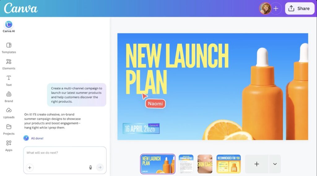 What truly separates Canva AI 2.0 from other generative tools is its ability to stay present and helpful throughout the entire creative journey without taking away your control. It relies on four key capabilities to make this happen. First is conversational design, which allows the AI to maintain the context of your project as it evolves, helping you brainstorm and iterate at every step. Second is agentic orchestration, which gives the AI access to Canva’s complete design engine. It understands your intent and coordinates the right tools to build anything from a client presentation to a multi-channel product launch.